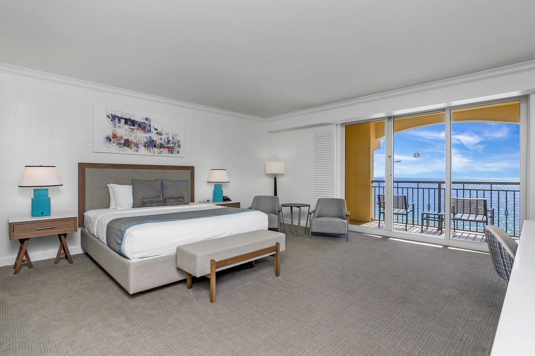 620 Sq Ft Oceanfront Studio with one king bed and a spacious balcony overlooking the ocean.
